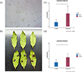 Figure 2 (a) The spore morphology of the pathogenic microorganism for inoculation; (b) lesion morphology in both control and treated groups at 7 days post-inoculation. (c) Relative expression levels of candidate gene GWHGACFB006749. (d) Relative expression levels of candidate gene GWHGACFB00356 (**p < 0.01) (Adopted from Xu et al., 2025) |